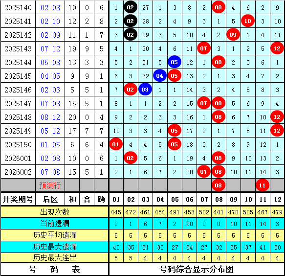 上期开奖:大乐透第2026002期开奖:04、08、15、20、31+07、08,前区012路比为1:2:2,奇偶比为2:3,五区比为1:1:2:0:1,大小比为2:3。