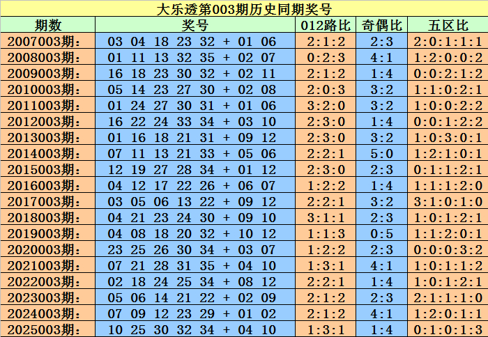 小霸王大乐透第2026003期历史同时后区定位分析