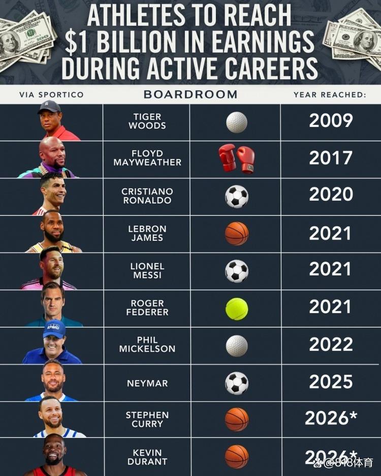 库里和杜兰特将与詹姆斯沿路,成为现役NBA球员中仅有的三位总收入超越10亿好意思元的球员。