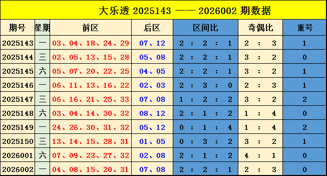 大乐透上期开奖回来:前区04 08 15 20 31,后区07 08。当期前区三区比为2:2:1,奇偶比为2:3;后区开独特偶大大组合。