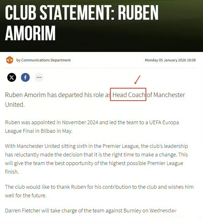 值得顾惜的少许是,在曼联秘书阿莫林离任的公告中,用词依旧是“Head Coach”(主闇练)而不是“Manager”(司理)。就在昨晚曼联1-1战平利兹联的比赛舍弃后,阿莫林还在发布会上暗示,我方是曼联的司理,而不是闇练。