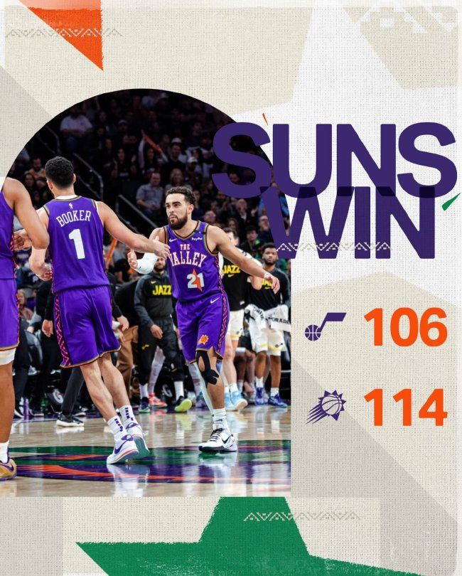 布克找回气象20投12中、三分12中6轰下34分5篮板4助攻率队取胜,杜兰特25分5篮板7助攻,太阳两连胜18胜19负排行西部第十一。