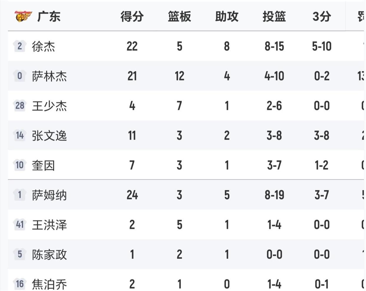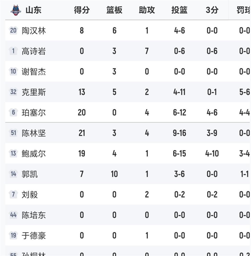 山东队名标青史。 陈林坚砍下全队最高的21分,珀塞尔也有20分进账。 但中枢后卫高诗岩6投0中只得0分,成为球队失利的短板。 赛后山东队栽植坦言:“咱们防徐杰就像防篮球界的蜘蛛侠,这东说念主跑起来根蒂看不见影子! ”