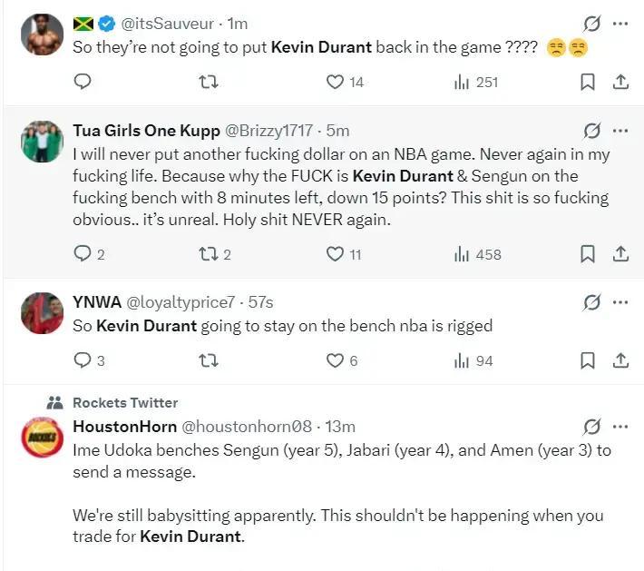 这可把场边的球迷和屏幕前的我们给急坏了,驳斥区陡然就炸了锅:“乌度卡疯了吧?